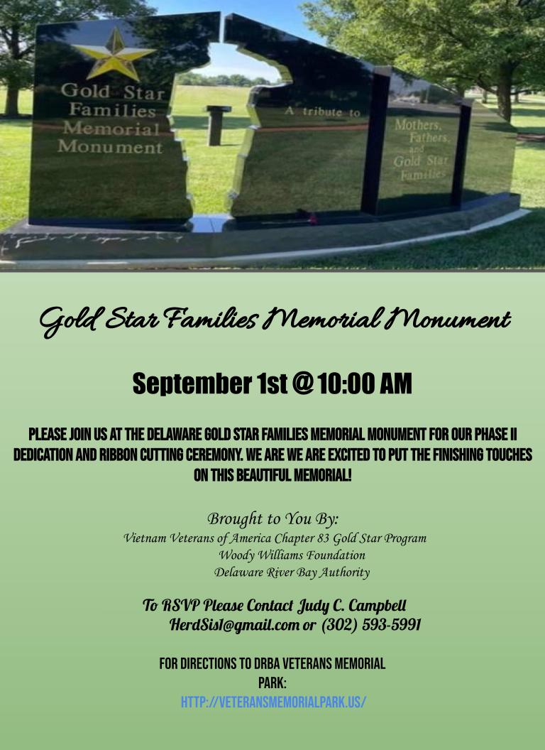 Please join us at the Delaware Gold Star Families Memorial Monument for our phase II